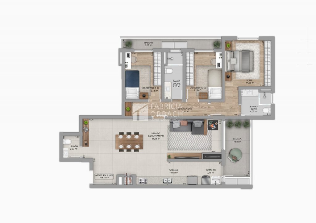 Área Privativa › 128,16m²