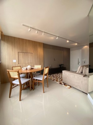 Os apartamentos contam com porcelanato nas áreas sociais e laminado nas áreas Intimas, rebaixe em gesso em todos os ambientes, laje com isolamento acústico, caixa para automação, espera para split e espera para água quente, churrasqueira.