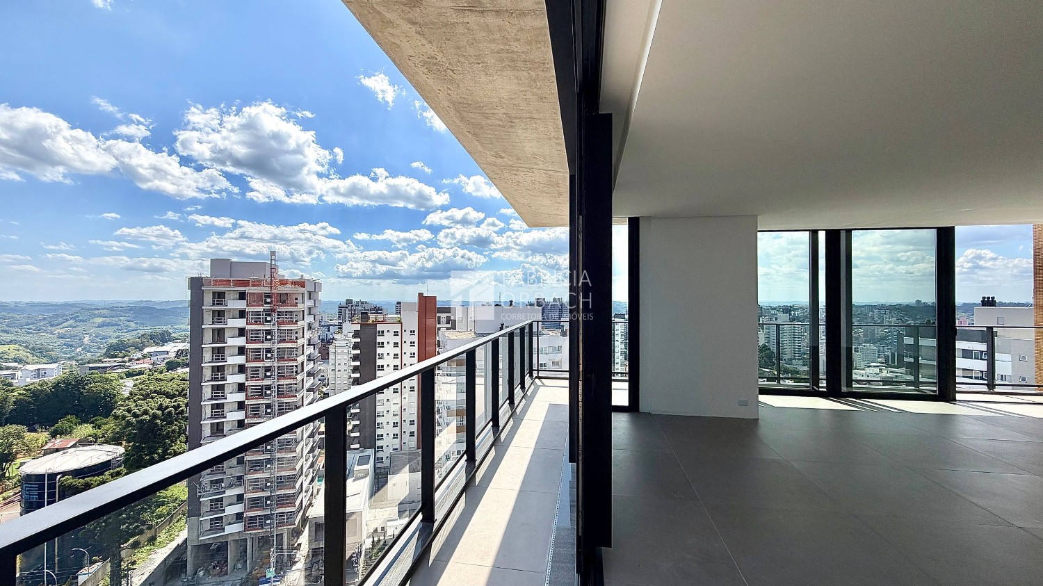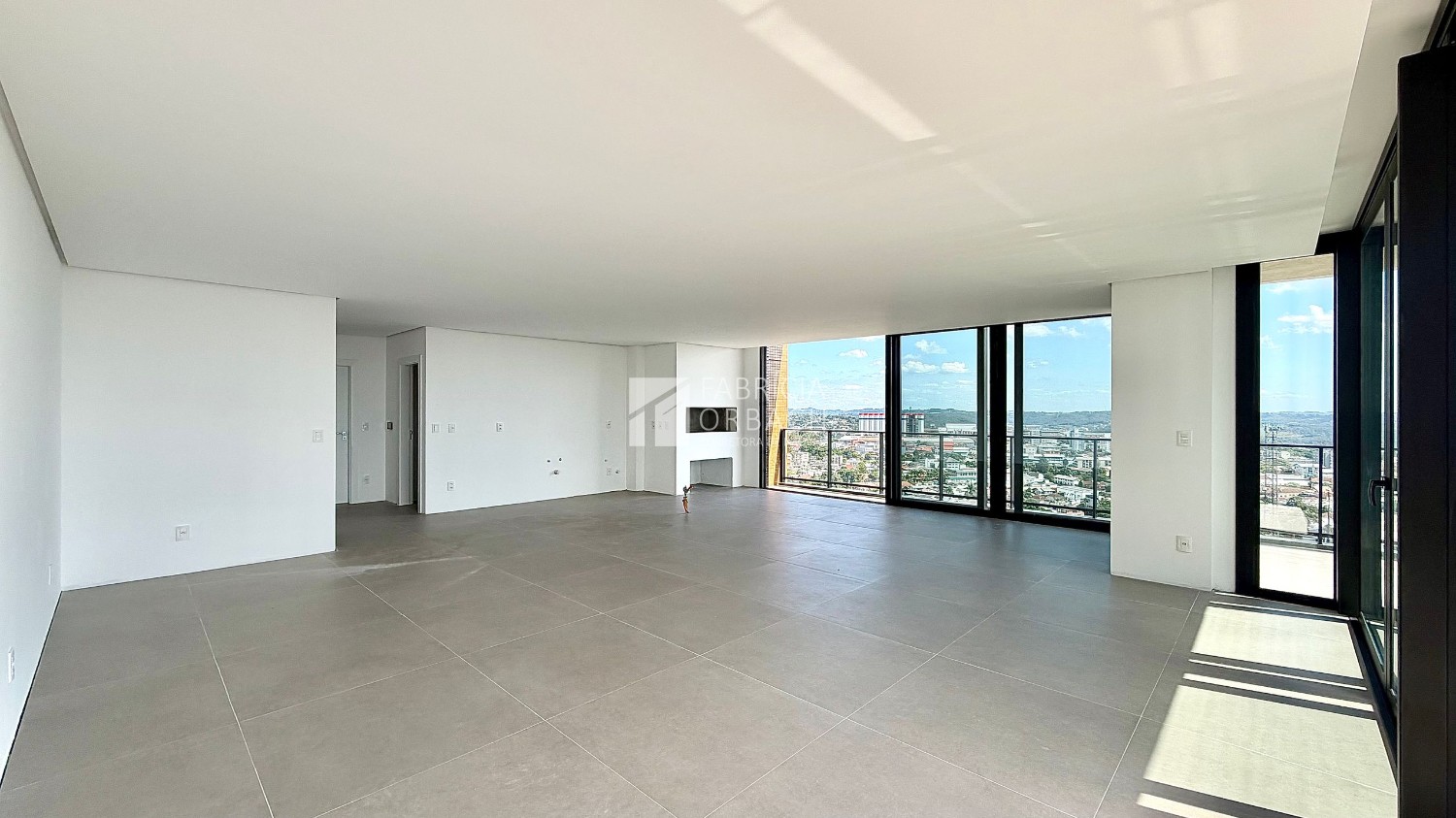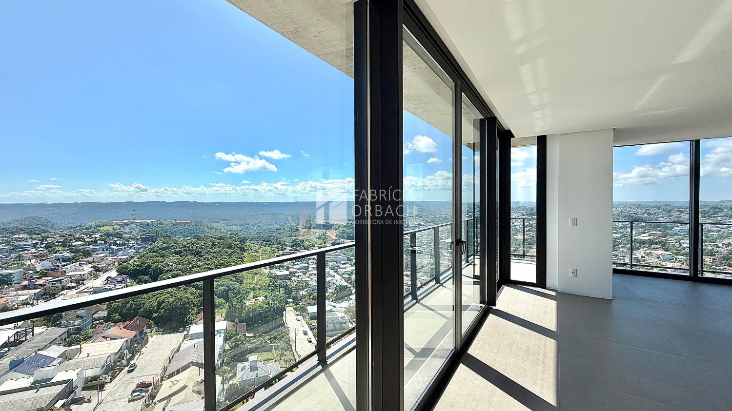 - Sala de estar e jantar com sacada aberta (guarda-corpo de vidro garantindo mais amplitude para a paisagem)