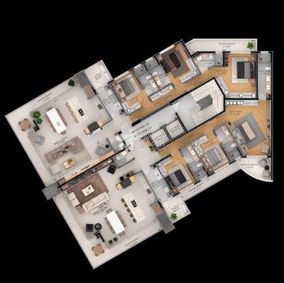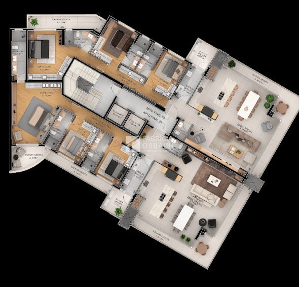 - Porcelanato nas áreas sociais - Piso laminado nas áreas íntimas