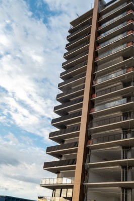 - Revestimento externo do prédio em pastilhas - Gesso em todo o apartamento - Massa corrida nas paredes internas - Sacada aberta em concreto aparente