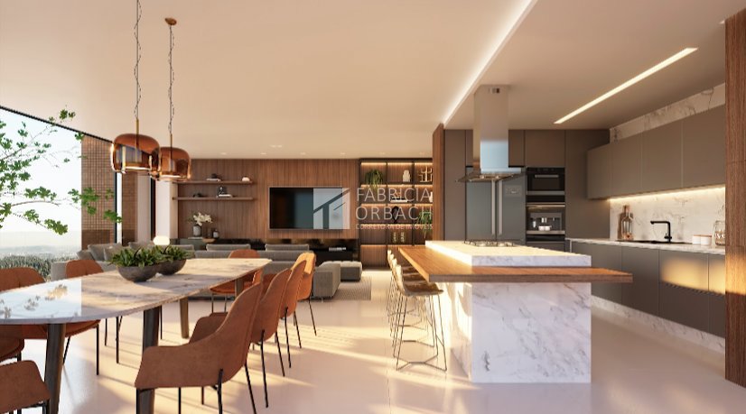 - Sala de estar e jantar com sacada aberta (guarda-corpo de vidro garantindo mais amplitude para a paisagem)