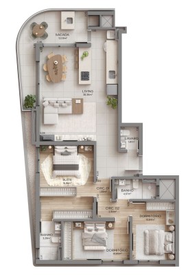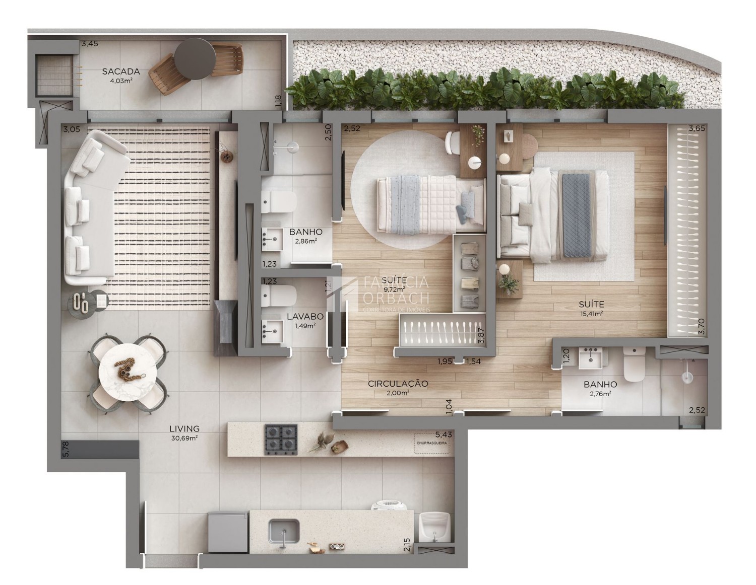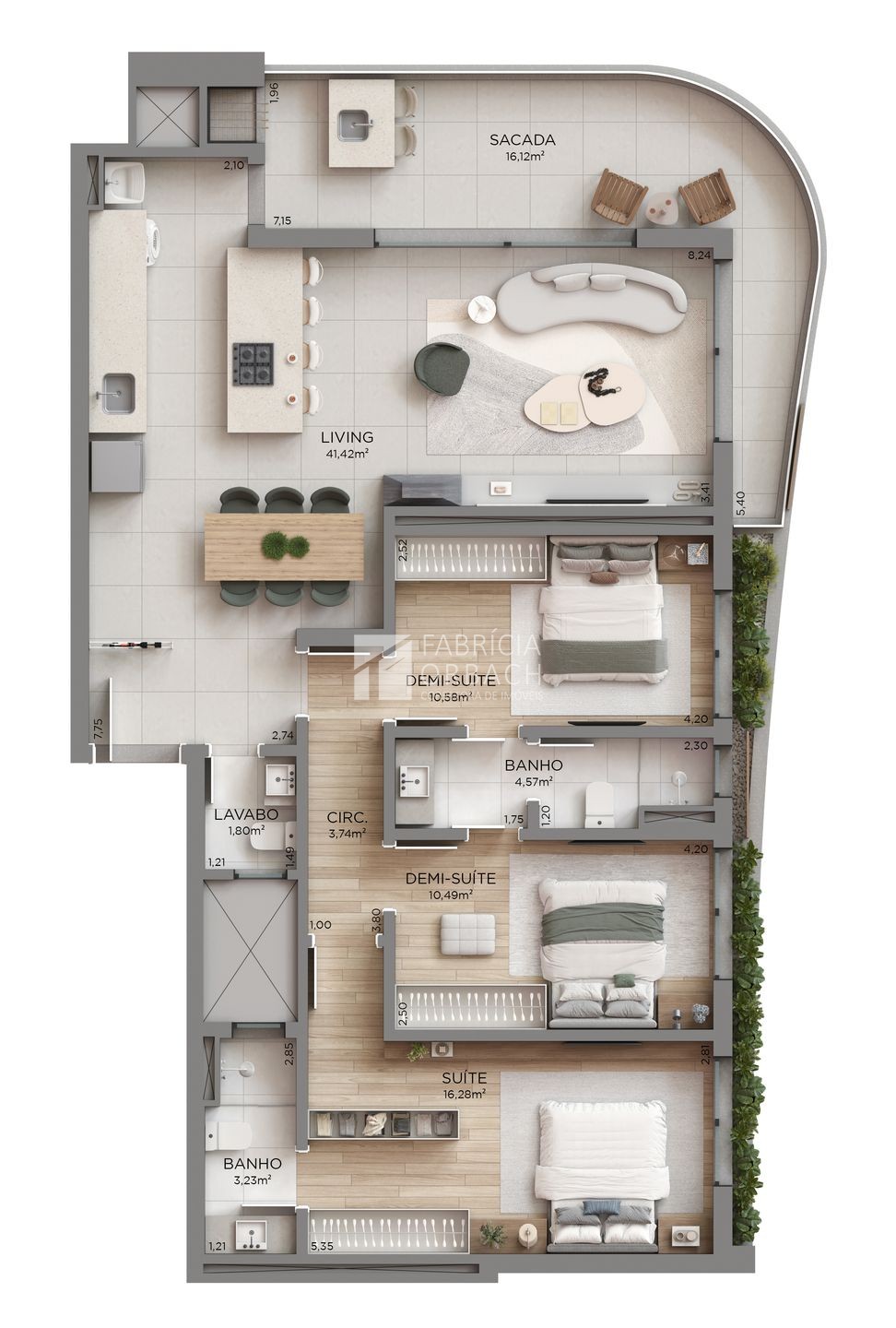 - Integração com o verde: Floreiras autoirrigáveis espalham frescor, vida e beleza por todo o projeto, aproximando a natureza do dia a dia.