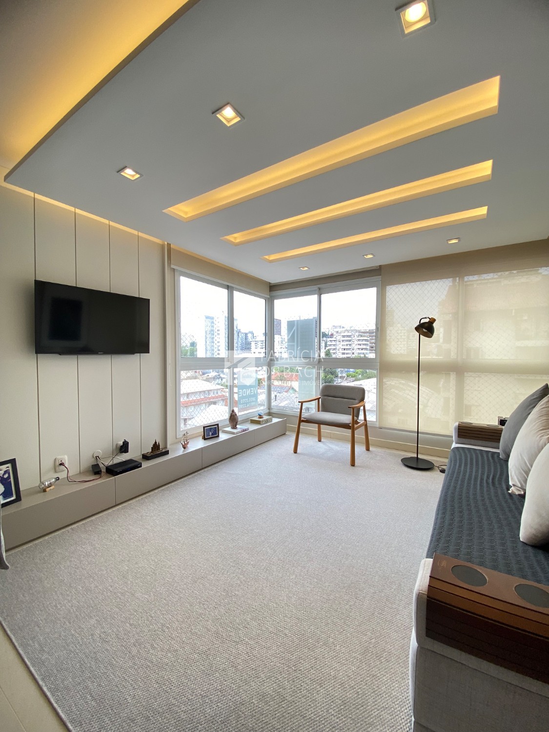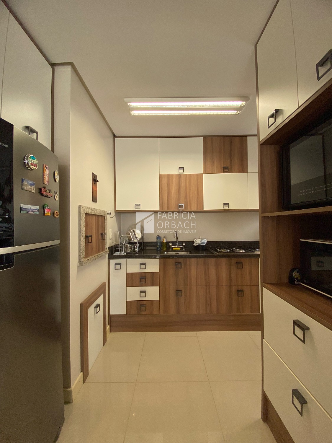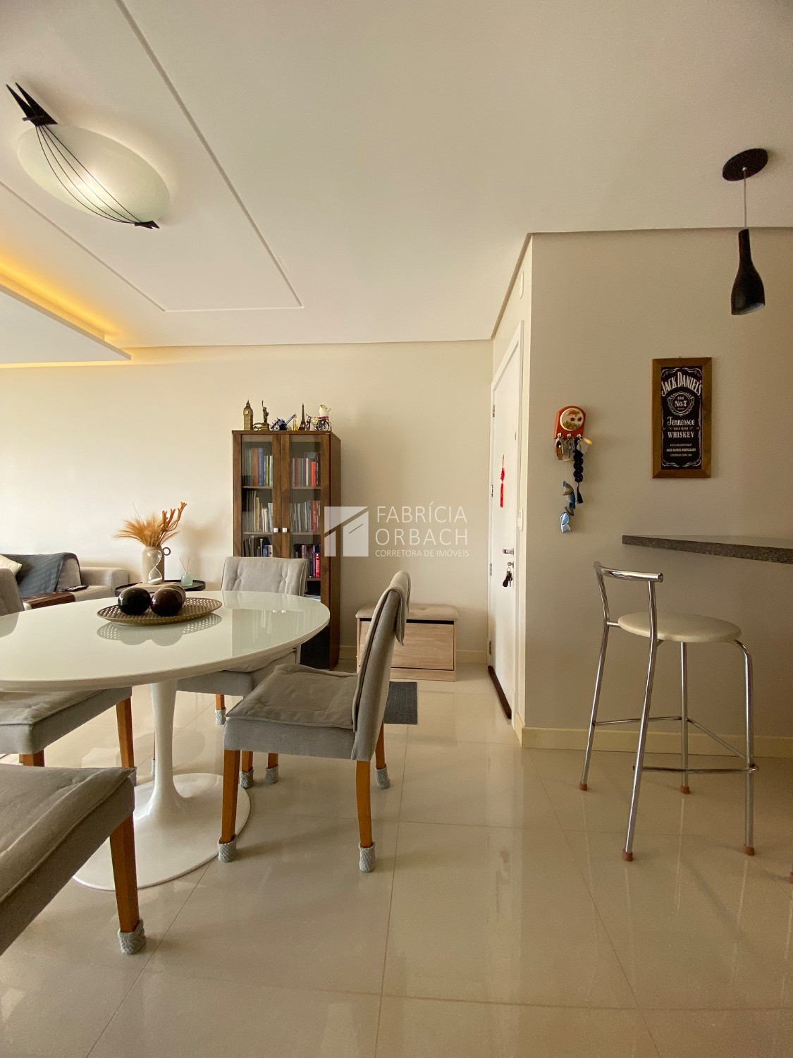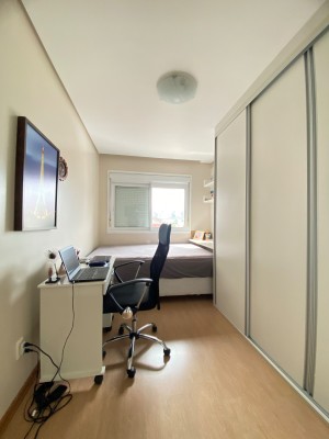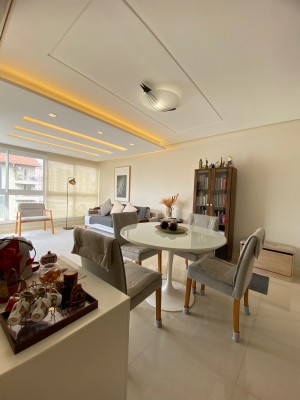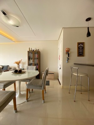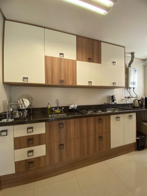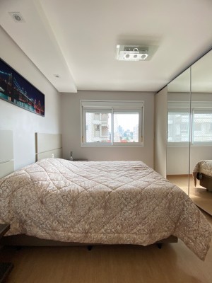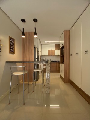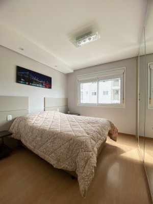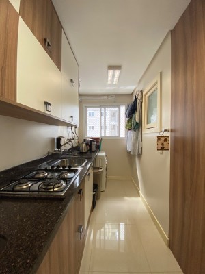Totalmente Mobiliado e Equipado: (saem apenas itens pessoais), com dois dormitórios (1 suíte), living integrado com sacada fechada e rebaixe em gesso, área de serviço, banheiro social.