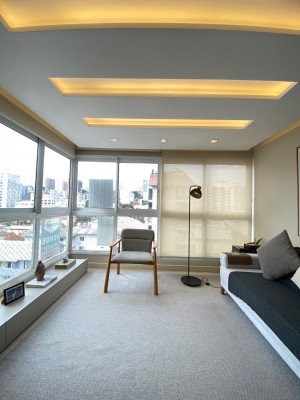 Este imóvel em andar alto oferece vista definitiva e isolamento termoacústico com vidros duplos em todos os ambientes.