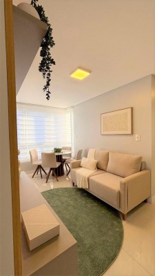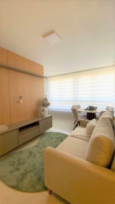 Totalmente mobiliado, com uma decoração impecável, o imóvel conta com uma área total de 83,93 m² e uma área privativa de 54,10 m². Apartamento Novo.