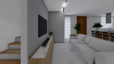Com 152,00 m² de área construída, ela conta com um belo pátio nos fundos e uma escada interna que dá acesso aos demais cômodos da residência.