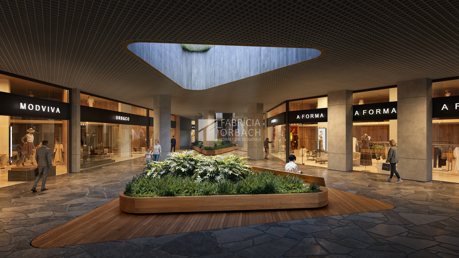 - Lojas, restaurantes e quiosques que vão de 18,82m² a 162,39m² espalhadas pelo Garden.