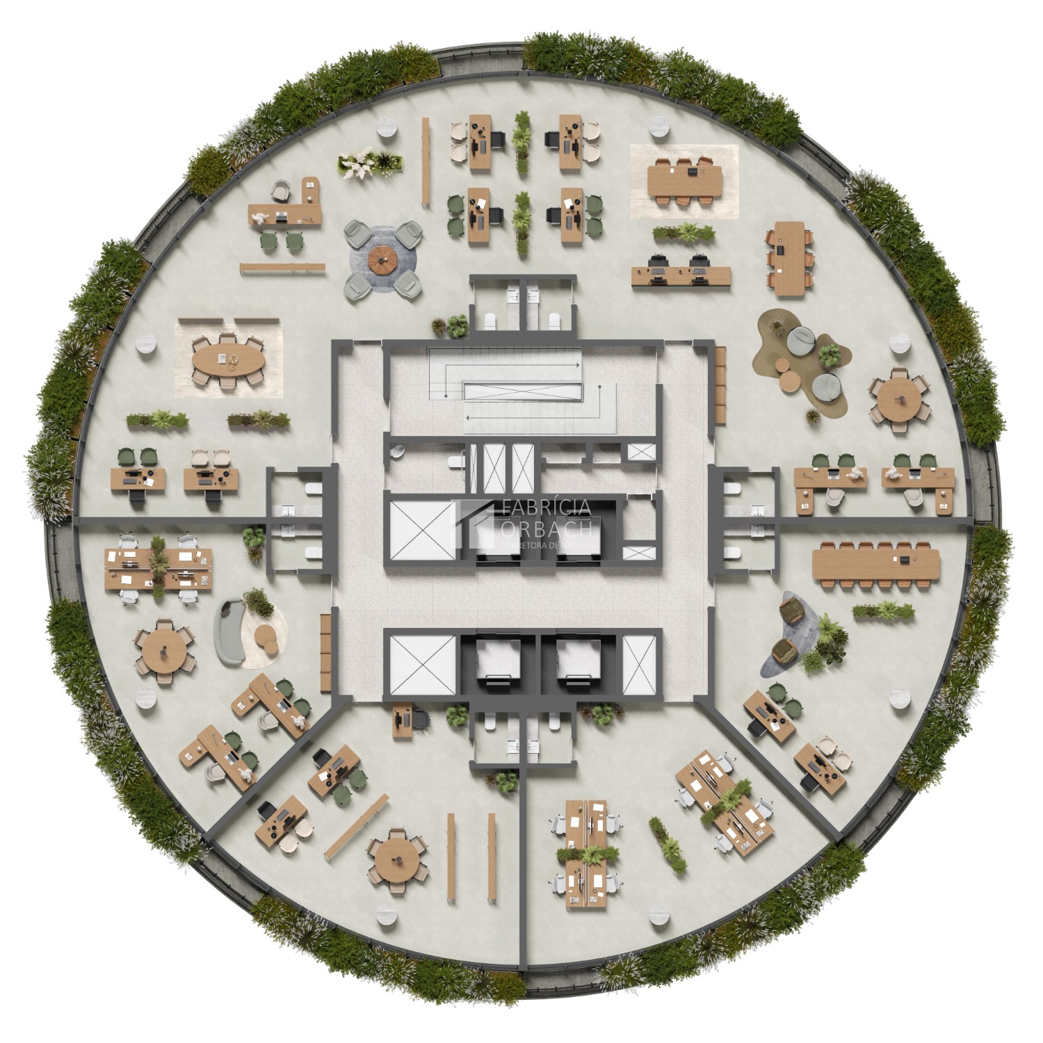 Escritórios integrados ao Garden e aos restaurantes, com acessos únicos para pedestres e exclusivos para executivos. Na base do Office, localizada junto ao Garden, está o lobby com 98m² e estruturas de portaria.