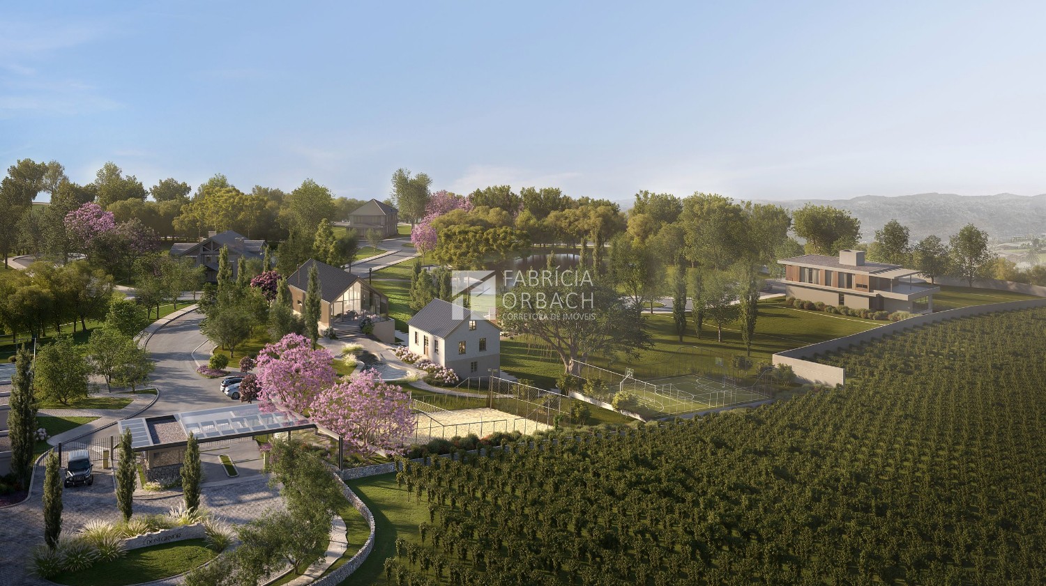 O condomínio é constituído de 53 lotes com metragens que variam de 800m² a 1000m².