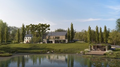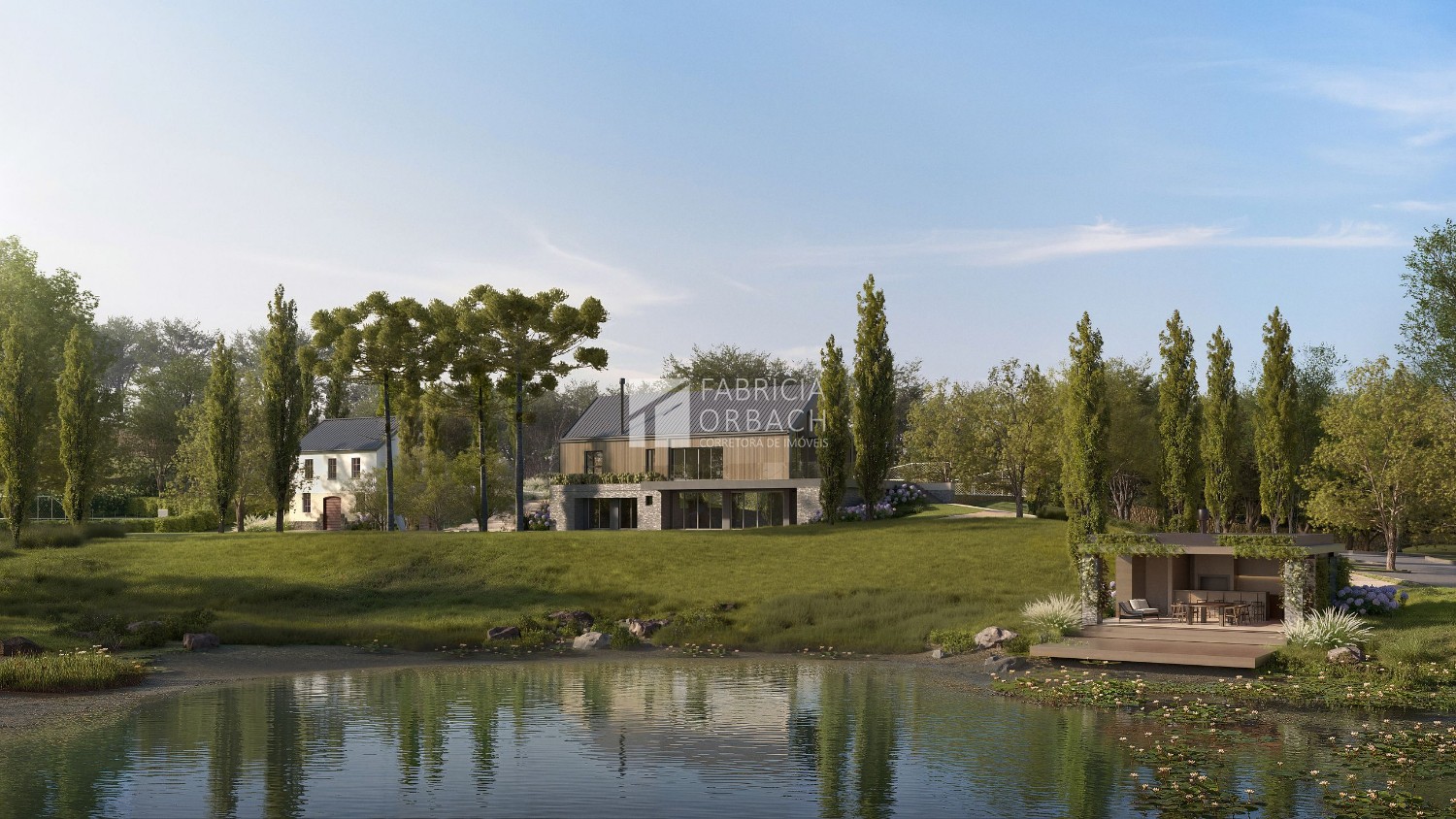 - Lago contemplativo com quiosque ao redor