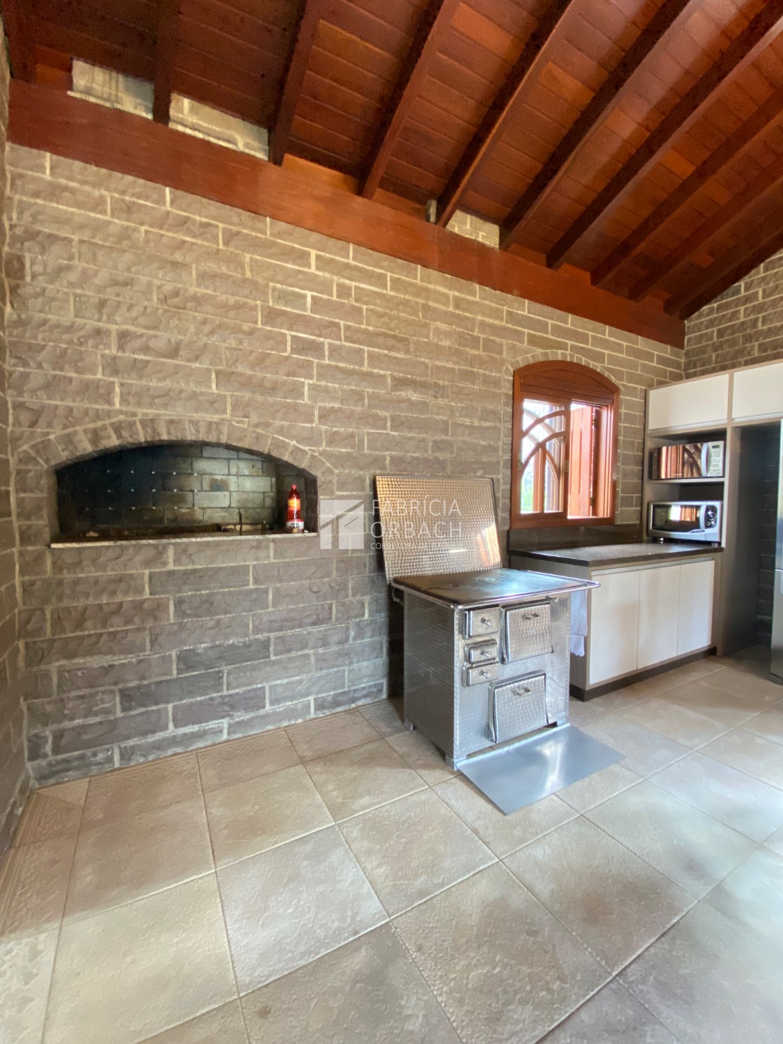 Salão de festas medindo 65m², com um visual robusto, rústico e sofisticado, com a beleza natural da pedra de basalto em destaque, ao entrar, você se depara com um hall de entrada convidativo que dá acesso a uma ampla sala e cozinha integradas, perfeitas para reunir amigos e familiares. A cozinha é espaçosa e funcional, com armários planejados, fogão a lenha e churrasqueira, área de serviço e uma despensa para facilitar a organização e um banheiro social.