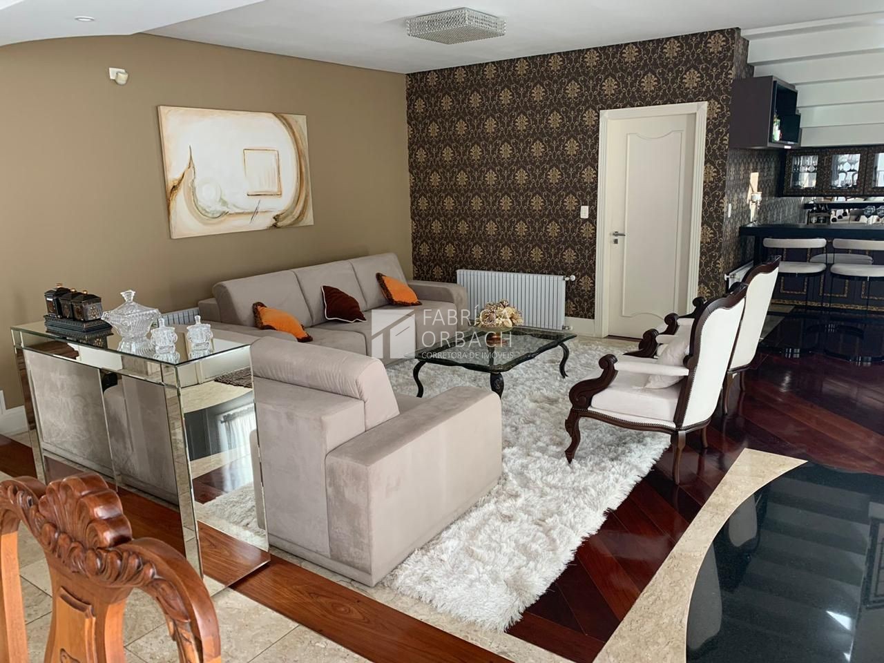 - Sala de estar e jantar integradas, com lareira