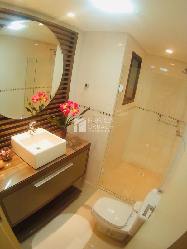 Descrição › Apartamento Mobiliado na Cidade Alta, composto de 02 dormitórios sendo 01 suíte, sala com 03 ambientes, cozinha, área de serviço, hall de entrada, banheiro social, box duplo de garagem com depósito. Prédio Alto Padrão, com elevador, salão de festas, academia, porteiro.