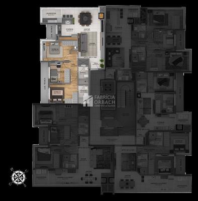 OS apartamentos contam com porcelanato nas áreas sociais e laminado nos dormitórios, rebaixe em gesso em todos ambientes, churrasqueira, laje com isolamento acústico, caixa para automação, espera para split e espera para água quente.