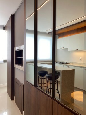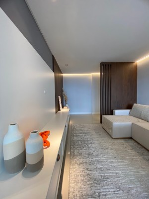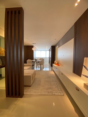 Os apartamentos contam com porcelanato nas áreas sociais e laminado nas áreas Intimas, rebaixe em gesso em todos os ambientes, laje com isolamento acústico, caixa para automação, espera para split e espera para água quente, churrasqueira.