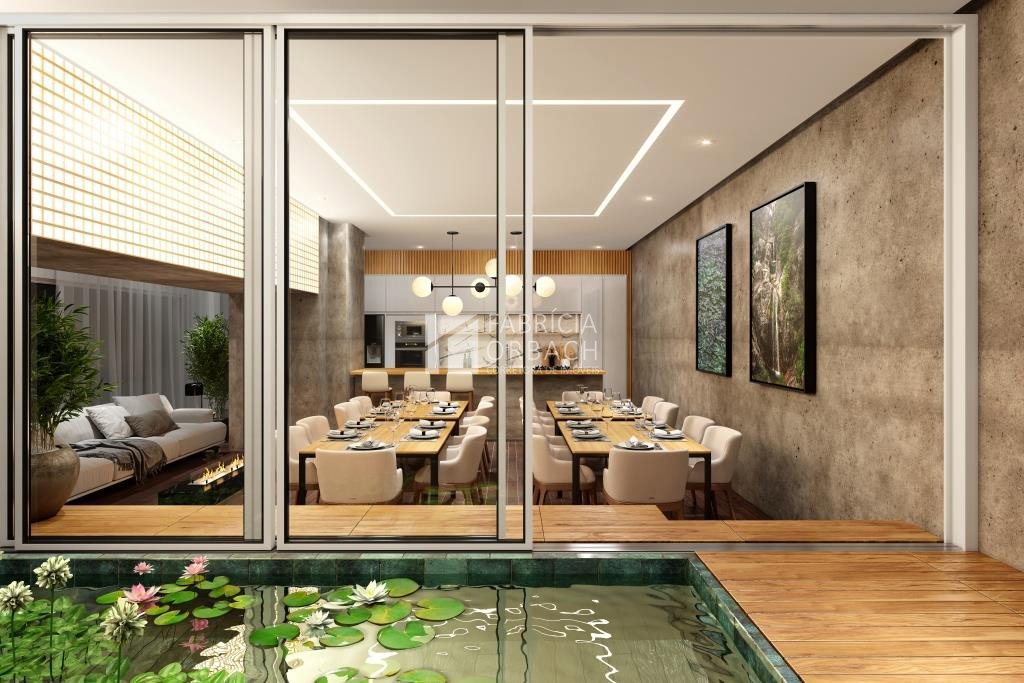 O frescor da vegetação no jardim, o som da água da cascata no hall de entrada, o toque do basalto, a iluminação natural das aberturas e nas circulações, conexão linda com o natural.