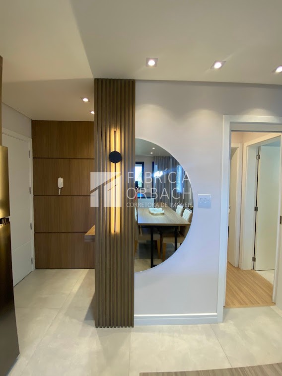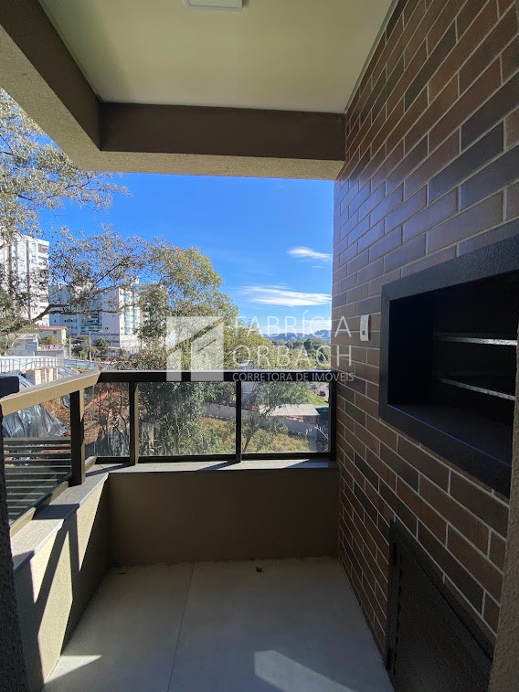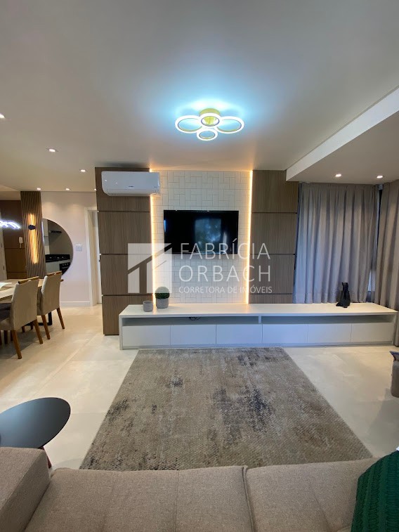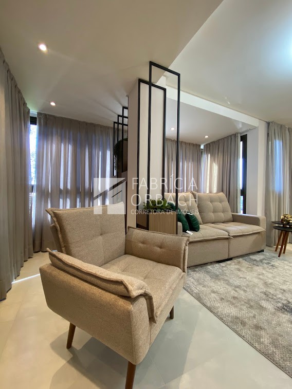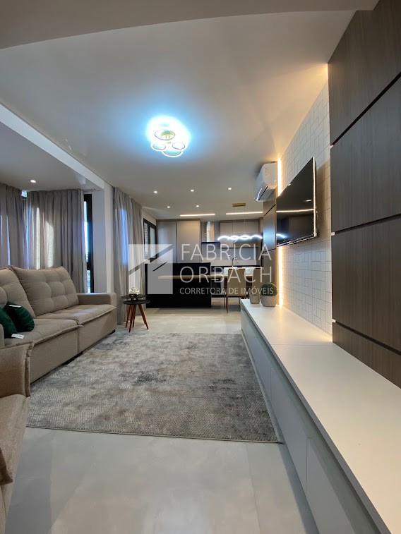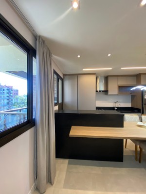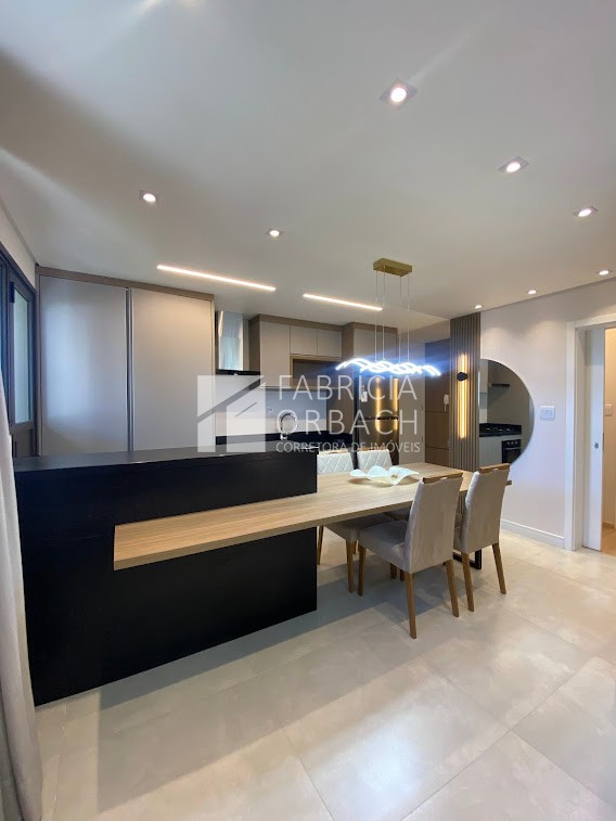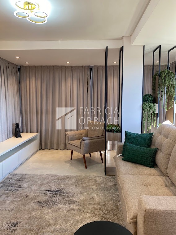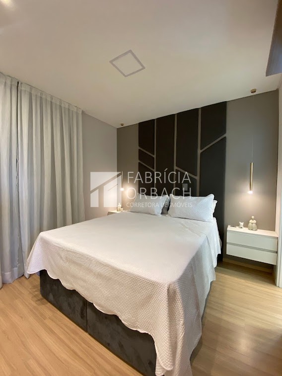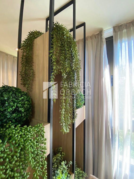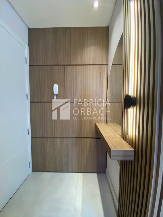 Mobiliado, o apartamento conta com 2 dormitórios, sendo 1 suíte, e 2 banheiros. Possui sacada aberta com churrasqueira.