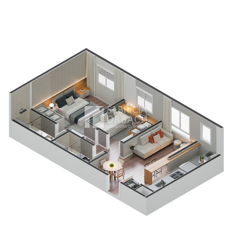 > Unidades 02 dormitórios, sendo um suíte. Área privativa de 54,23m²