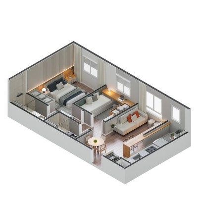 O empreendimento possui unidades privativas de 1, 2 e 3 dormitórios: