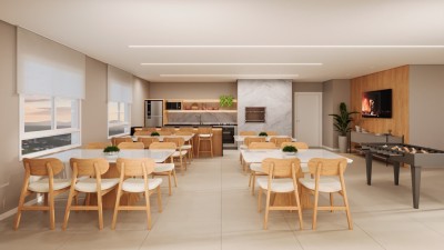 lavanderia, espaço gourmet, salão de festas com varanda, brinquedoteca, fireplace, piscina, dois lavabos acessíveis PCD, Pet Place.
