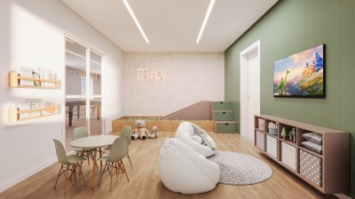 lavanderia, espaço gourmet, salão de festas com varanda, brinquedoteca, fireplace, piscina, dois lavabos acessíveis PCD, Pet Place.