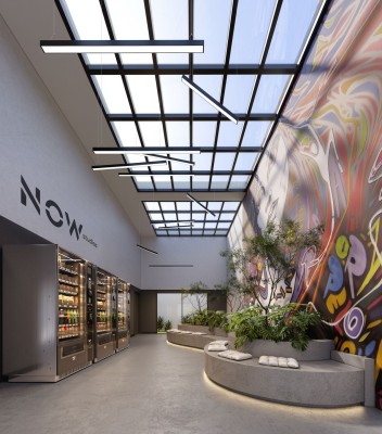 Hall de entrada com recepção, vending machines, 02 salas comerciais.