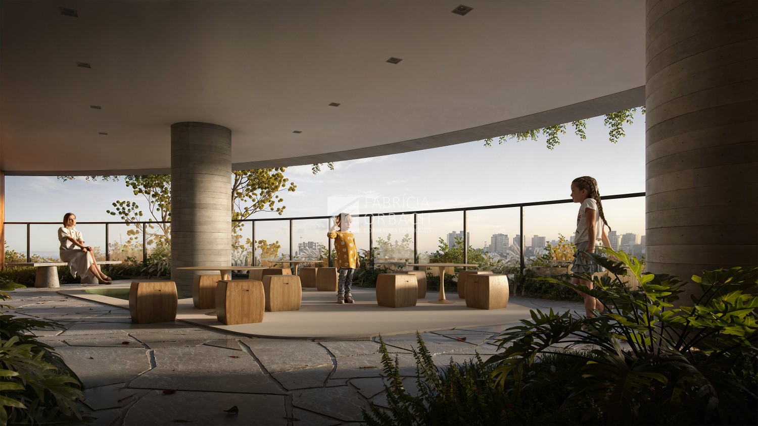 - Rooftop com jardins e área de contemplação