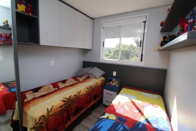 Descrição › Excelente apartamento semi-mobiliado à venda, no bairro São João/Vinhedos, composto por 02 dormitórios, 01 banheiro social, cozinha com bancada, sala com sacada integrada e churrasqueira. Apto com rebaixe em gesso, piso porcelanato na sala e banheiro, piso vinílico nos dormitórios e piso cerâmico na cozinha. Posição Solar leste e norte. Área Privativa: 47,67m². 1 Box de garagem.