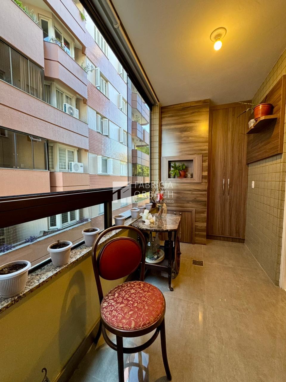 Descrição › Localizado no Centro de Bento Gonçalves, este apartamento de 2 dormitórios, sendo 1 suíte ( com banheira e sacada fechada), é perfeito para quem busca praticidade, que trabalha ou estuda nas mediações do Centro. Com uma área total de 135,66m² e privativa de 100,00m², o imóvel conta com uma série de comodidades, como elevador, salão de festas, churrasqueira e garagem. Além disso, possui sacada fechada na sala, possui esquadrias em alumínio e rebaixo em gesso. Apartamento está reformado.