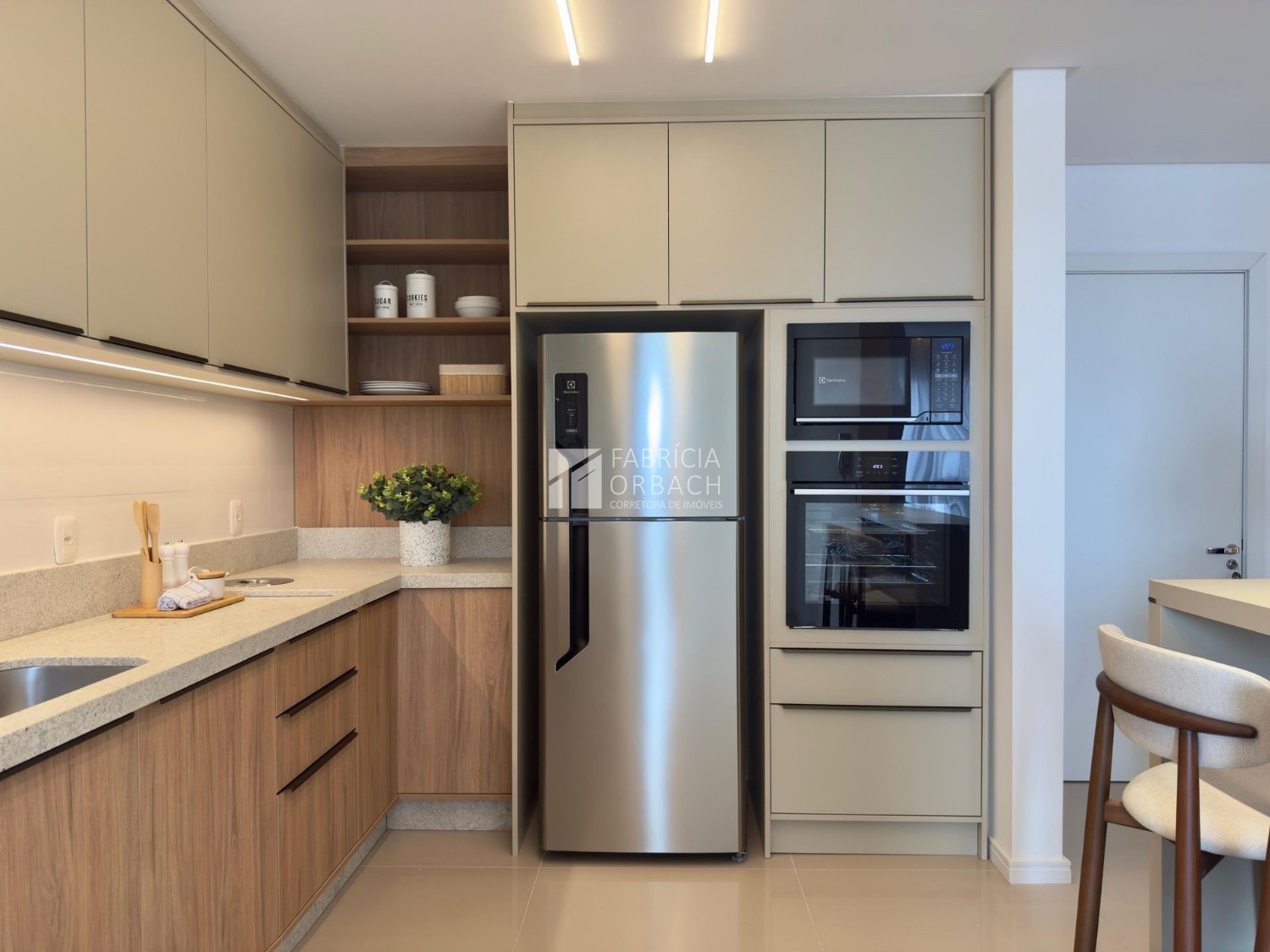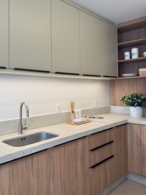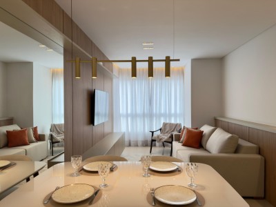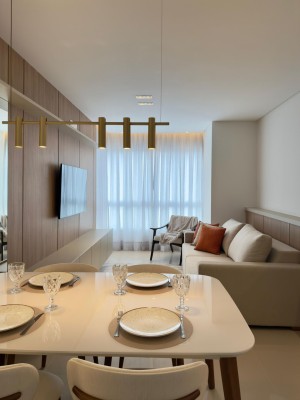 Composto de 02 dormitórios (mobiliados e decorados), sala e cozinha móveis planejado e eletroeletrônicos, (mesa com cadeiras e sofá).