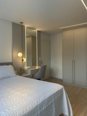 Na área de serviço com móveis planejados, possui uma sacada aberta com churrasqueira. Além dos móveis, possui cortinas, luminárias, espelhos, tudo pensando no melhor para você.