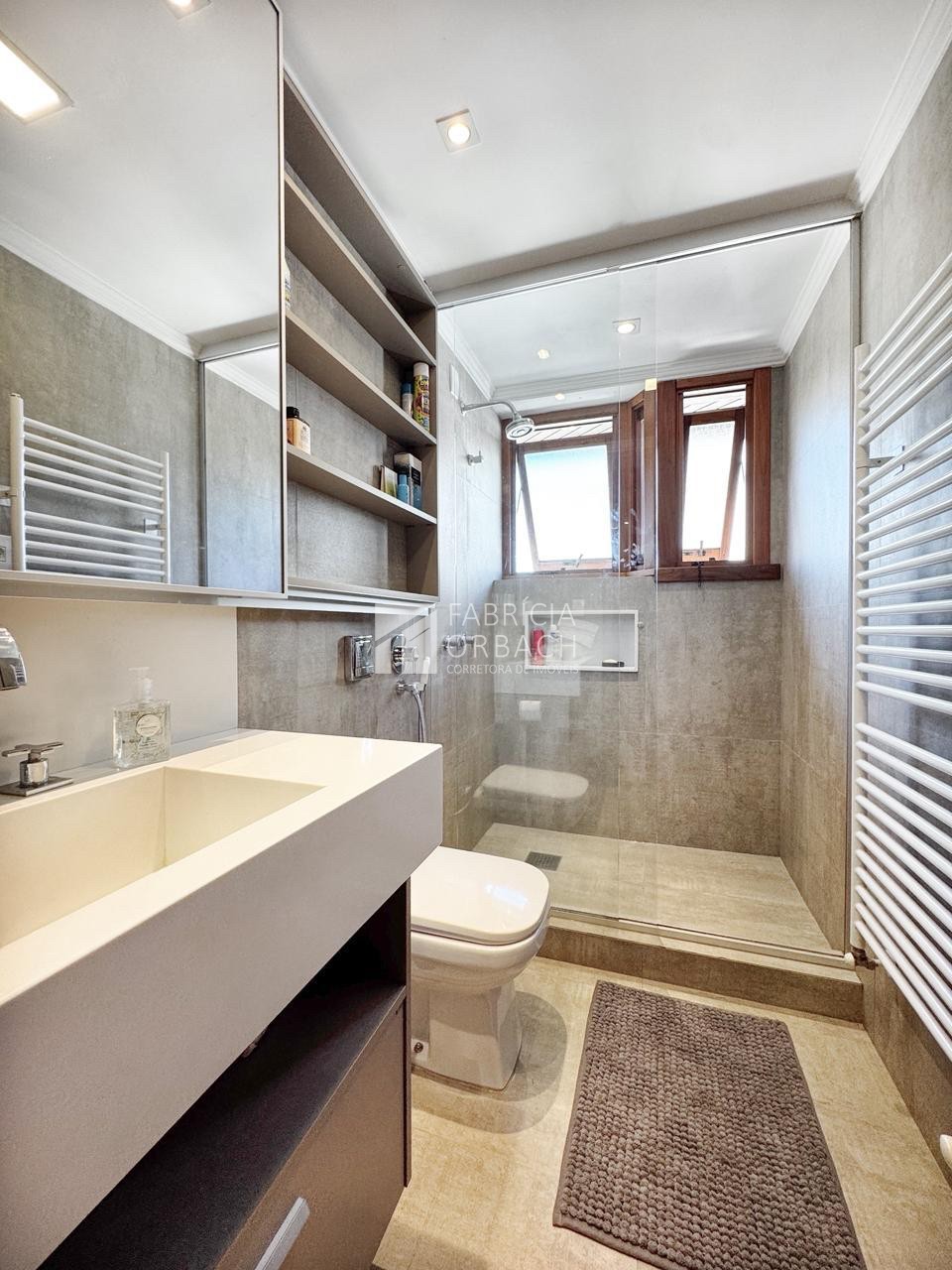 • Banheiro da suíte com acabamento em dois tons e piso antiderrapante