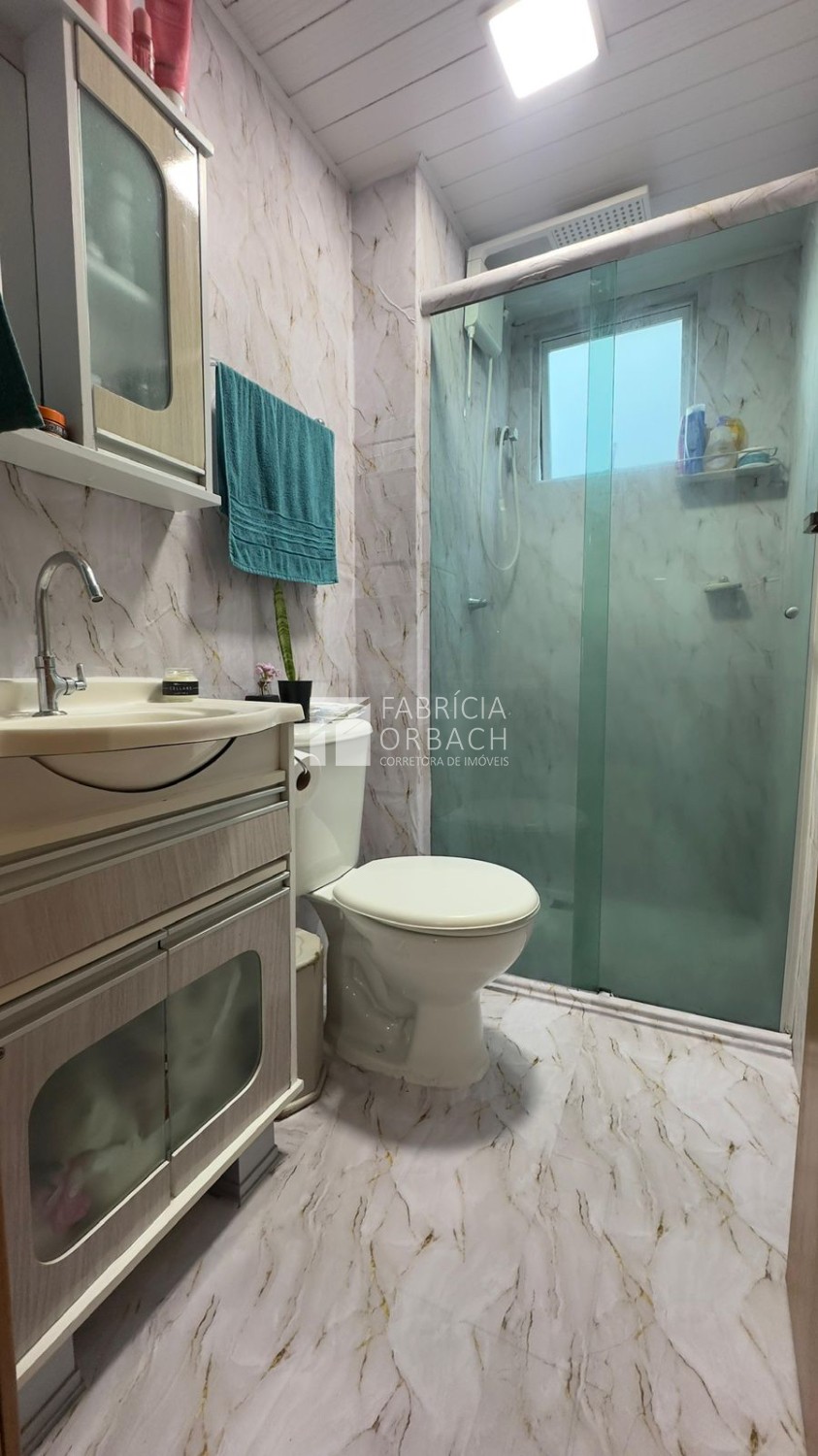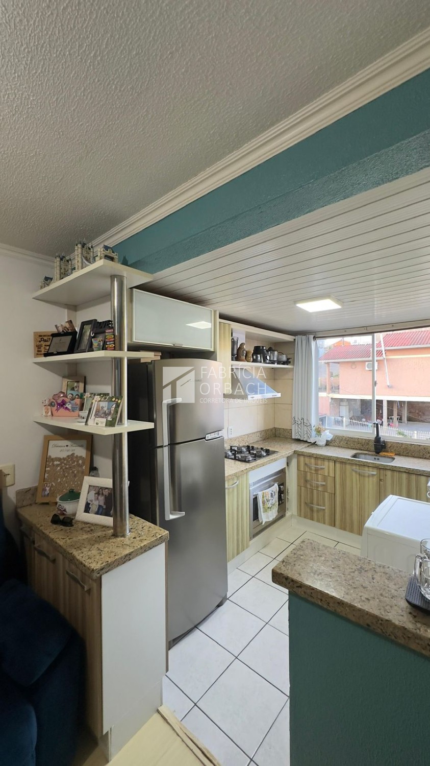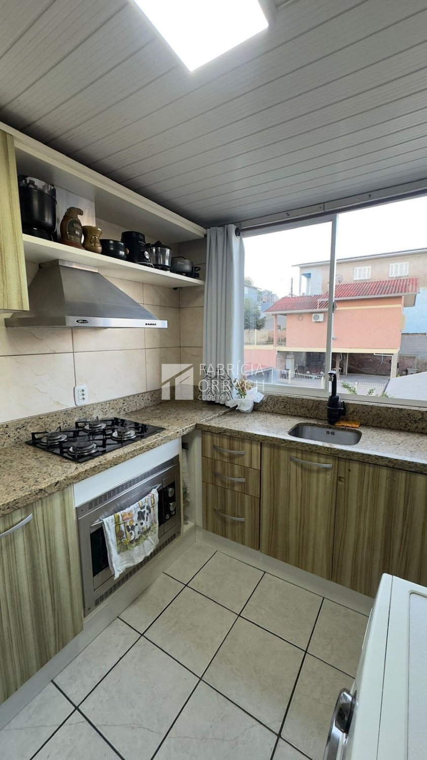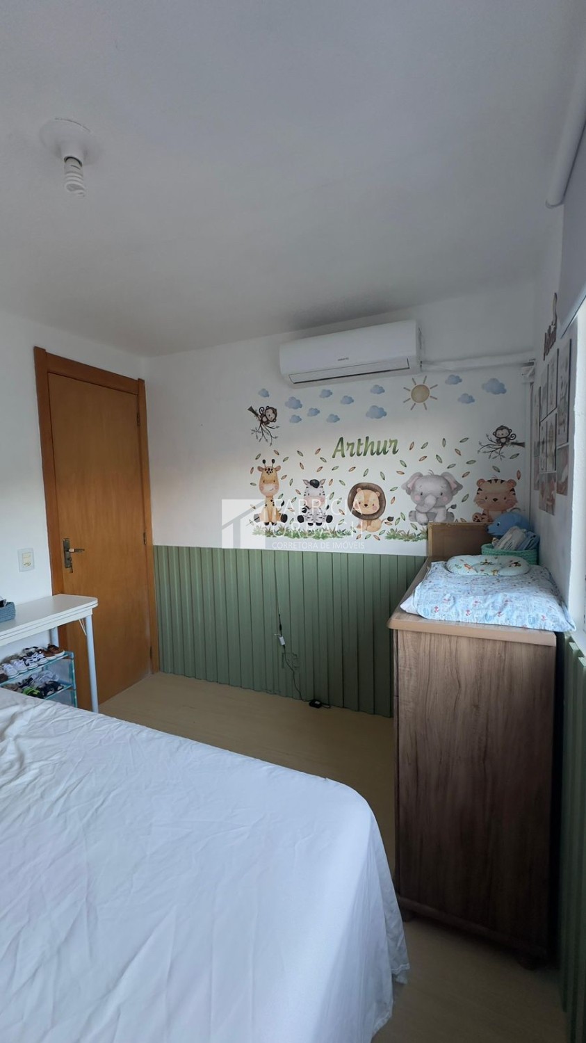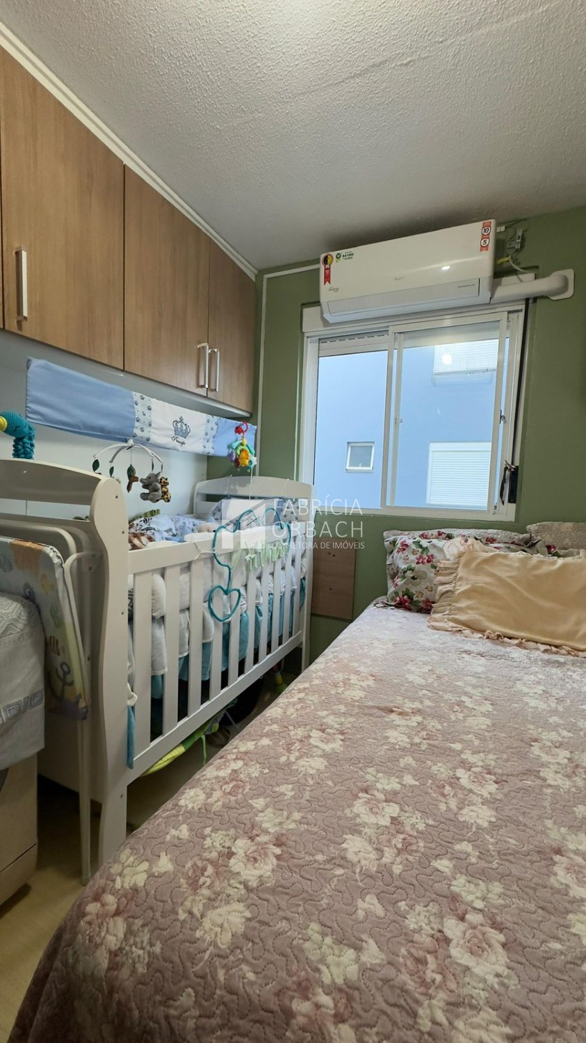Descrição › Apartamento localizado no terceiro andar (residencial sem elevador), o imóvel oferece 42 m² privativos, distribuídos em dois dormitórios, sala de estar, banheiro social e cozinha com lavanderia integrada.