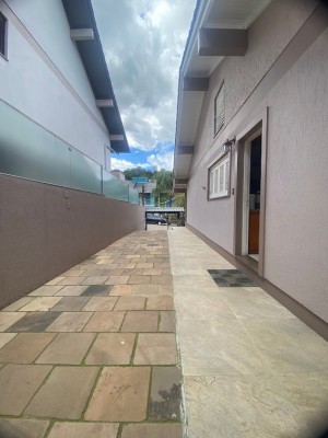 A garagem comporta 2 carros e ainda conta com uma churrasqueira e um banheiro, tornando o espaço versátil e funcional. Há também a possibilidade de transformar parte da garagem em um apartamento de 1 dormitório, sala e cozinha, ideal para visitas ou para gerar uma renda extra com aluguel.