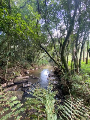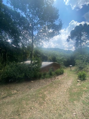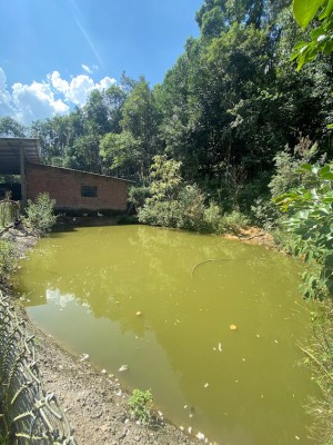 São 10.000,00m² de puro charme! Conta com uma casa de 2 pavimentos, tipo tijolos a vista, parte superior com 02 dormitórios sendo 01 suíte, sala/cozinha com lareira. Possui uma escada interna com acesso a cozinha que fica na parte inferior, possui uma sala ampla com churrasqueira para poder receber à vontade amigos e familiares, banheiro social, lavanderia e uma varanda com vista para o riozinho que pertence ao imóvel.