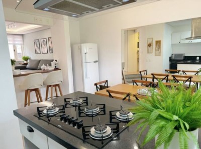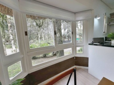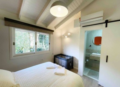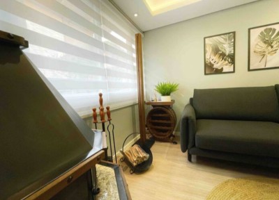 Decoração moderna e minimalista, bem equipada com lareira na sala, e ar condicionado nos quartos e cozinha!