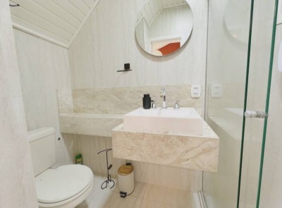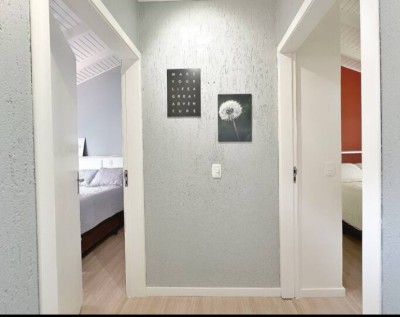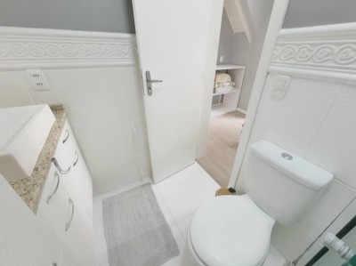 Condomínio de casas Geminadas, com dois pavimentos, com área privativa de 75,24m² e área total de 100,25m², o térreo com sala, cozinha e um lavabo, uma escada que leva para o segundo andar com duas suítes, cada quarto com seu banheiro completo!